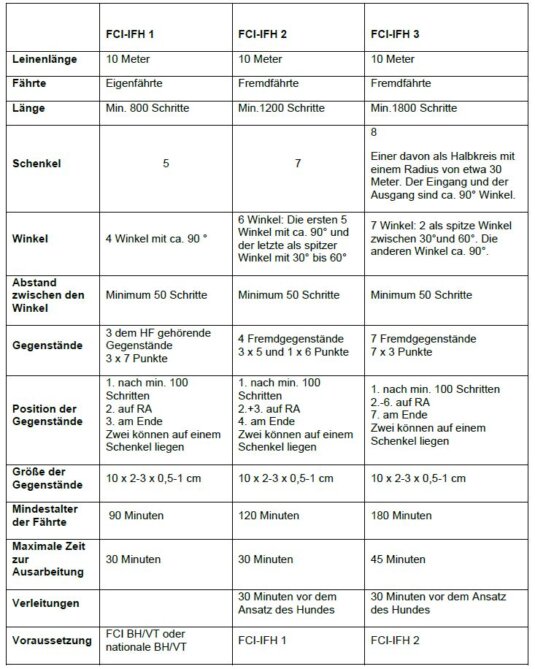 Prüfungsfährten gemäß der aktuellen Prüfungsordnung Stand 01.01.2025 (für alle Fährtenprüfung ist die BH/VT Mindestvoraussetzung):